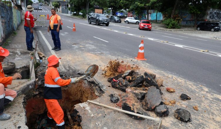 Com ação rápida, Manaus corrige rompimento e recupera drenagem na avenida Umberto Calderaro Filho